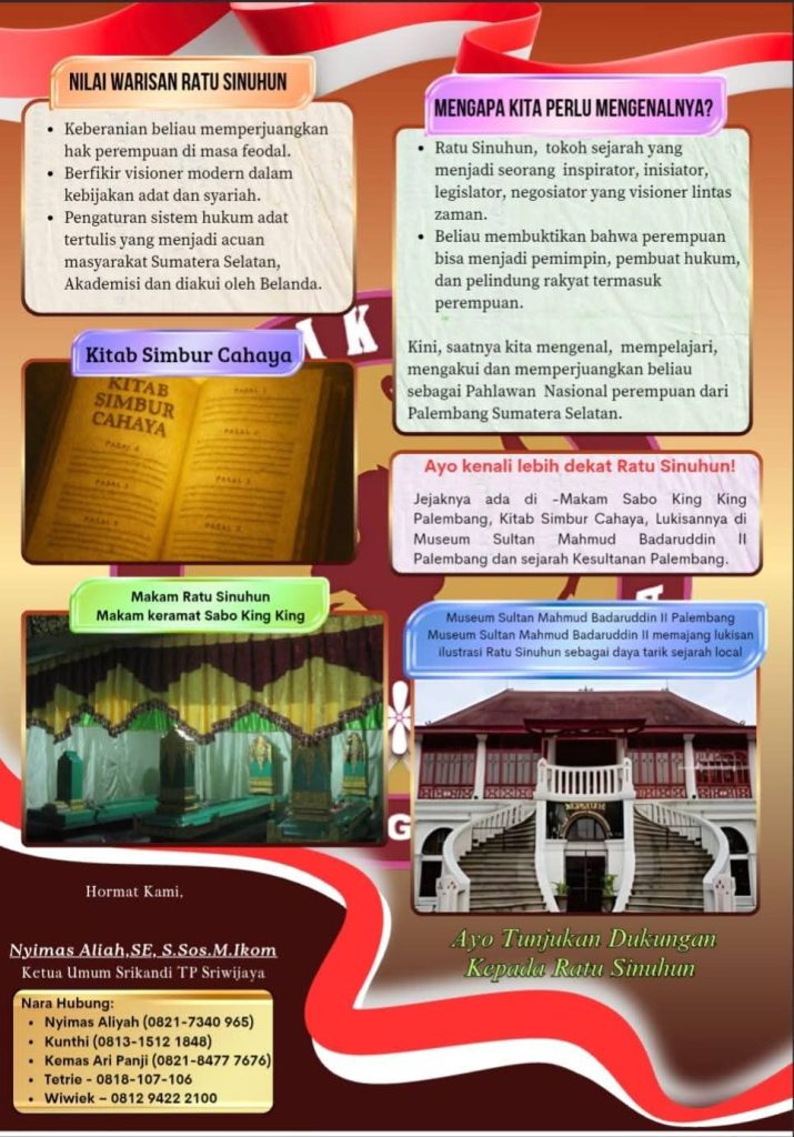 Penelitian ini merupakan usaha untuk menemukan eksistensi dan kiprah perempuan Sumatera Selatan. Bahwa perempuan Sumsel ternyata sudah sejak lama dapat berdampingan dengan para laki-laki, bermitra dengan sangat baik. Kondisi ini dapat dilihat dari bunyi pasal-pasal yang dimuat dalam aturan adat berupa Undang-undang Simbur Cahaya.